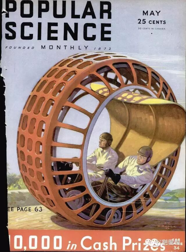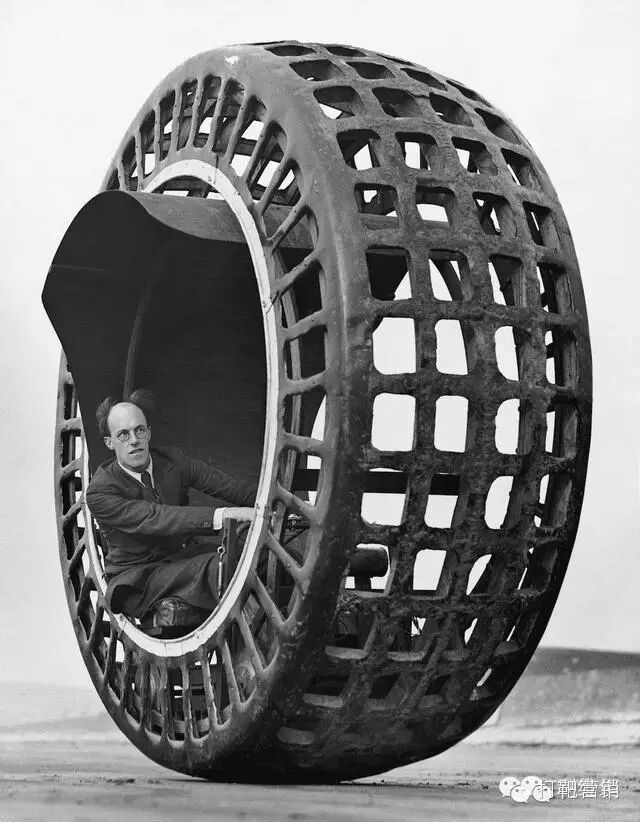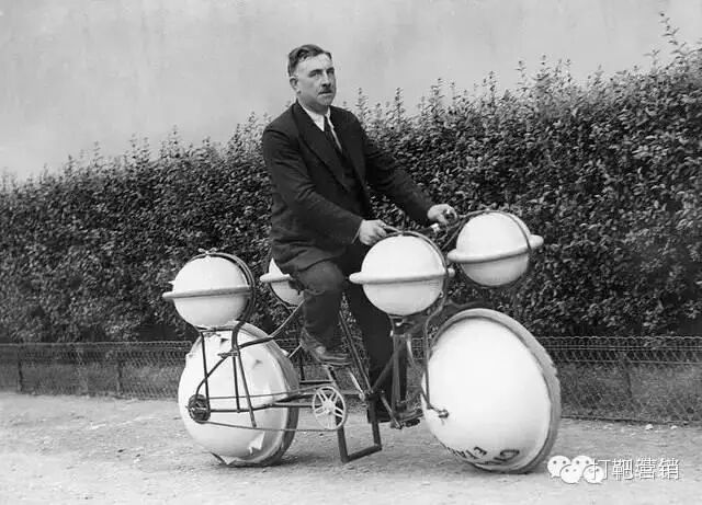 有时候你或许也会问一句——为什么自行车目前普及的是两个轮子的?汽车是四个轮子?其实,从19世纪末到上世纪二三十年代,人们对于独轮车还是有过不少探索的,比如下面这种叫Dynasphere的独轮车,这在当年可是专利产品: