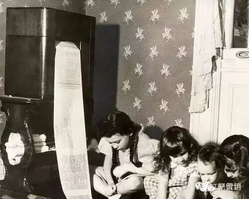 传真报纸,1938年,纽约市WOR广播电台发出了世界上第一份无线传输的报纸。图片中,孩子们正在阅读密苏里报中的儿童版面。