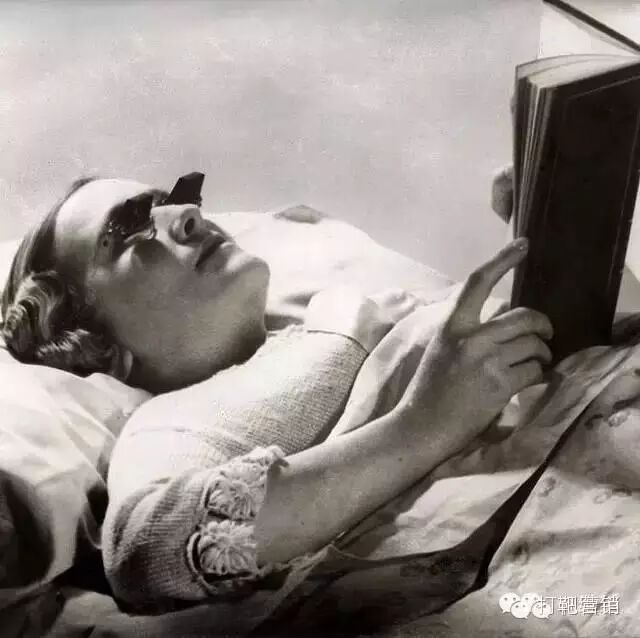 躺着看书的汉布林(Hamblin)眼镜,专为躺着看书的人们设计的一款眼镜;英格兰,1936年